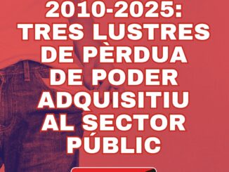 La Federació Estatal de Treballadores de les Administracions Públiques (FETAP-CGT) fem públic l’informe “2010-2025: Tres lustres de pèrdua de poder adquisitiu al sector públic”, que constata una pèrdua acumulada del 18,15% en els salaris públics enfront de l’increment de l’IPC en el mateix període.