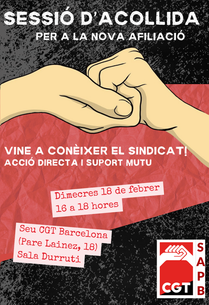 La sessió es realitzarà dimecres 18 de febrer, de 16 a 18 hores, a la Sala Durruti del local de la CGT Barcelona (2a planta)